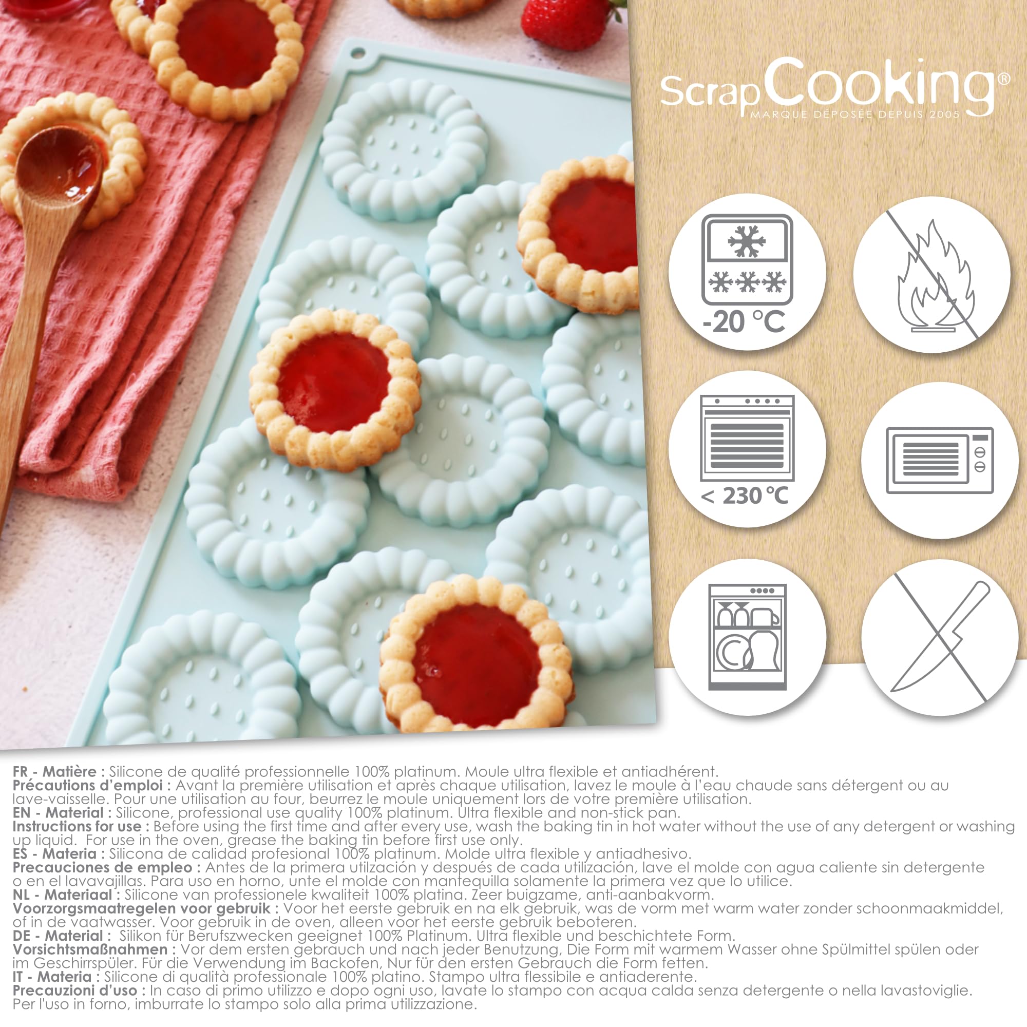- 🇫🇷 MARQUE FRANÇAISE – ScrapCooking est une marque française qui conçoit depuis 2005 des produits ludiques et à la portée de tous pour réaliser et embellir ses pâtisseries et douceurs maison. L’ensemble de nos produits sont imaginés en France, dans nos ateliers à Fondettes (37).